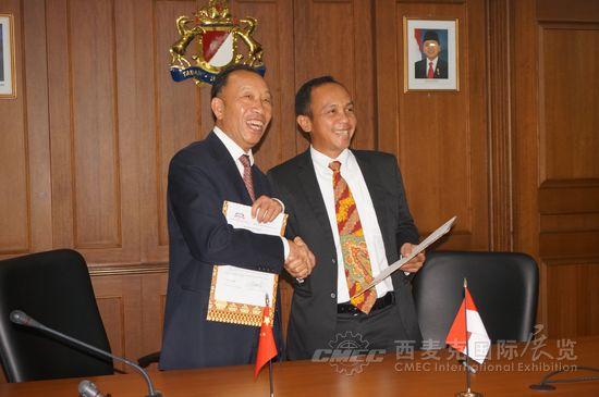 圖為機(jī)械汽車展覽聯(lián)合會(huì)與印度尼西亞工商會(huì)簽訂合作備忘錄