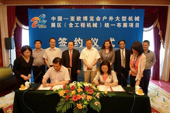 6月7日,西麥克國際展覽有限責(zé)任公司(以下簡稱“西麥克展覽公司”)與新疆國際博覽事務(wù)局在新疆烏魯木齊昆侖賓館會議室舉辦第二屆至第五屆中國—亞歐博覽會大型機(jī)械展區(qū)(含工程機(jī)械)統(tǒng)一布展項(xiàng)目簽約儀式。新疆國際博覽事務(wù)局出席人員有局長李靜援、副局長陳季、局長助理夏迪亞•阿不拉海提等,我方出席人員有CMEC總公司副總裁張建國,西麥克展覽公司總經(jīng)理張力,副總經(jīng)理吳楚鵬等。陳季副局長和張力總經(jīng)理代表雙方在合約上簽字。