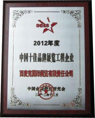 在剛剛落下帷幕的2012年中國會展業(yè)年度大會上,西麥克展覽公司榮獲“2012年度中國十佳品牌展覽工程企業(yè)”大獎,這是我司繼9月份獲得“2011-2012年度中國十大影響力會展企業(yè)大獎”后再奪殊榮。