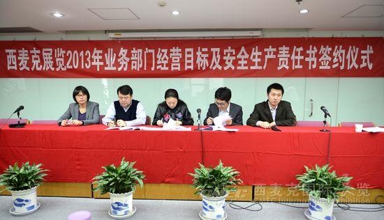2012年西麥克展覽公司各項(xiàng)經(jīng)營(yíng)指標(biāo)均取得較好成績(jī),面對(duì)2013年嚴(yán)峻的國(guó)際經(jīng)濟(jì)形勢(shì)和外部環(huán)境,西麥克展覽公司將確保完成總公司經(jīng)營(yíng)任務(wù)為中心工作。按責(zé)任到人、分級(jí)管理、全員參與的原則,層層分解和落實(shí)全年經(jīng)營(yíng)工作和安全生產(chǎn)責(zé)任,3月12日,公司舉行了《業(yè)務(wù)部門經(jīng)營(yíng)目標(biāo)及安全生產(chǎn)責(zé)任書》簽字儀式。簽字儀式上,張總與業(yè)務(wù)部門負(fù)責(zé)人公司及分管領(lǐng)導(dǎo)共同簽署了《業(yè)務(wù)部門經(jīng)營(yíng)目標(biāo)及安全生產(chǎn)責(zé)任書》。